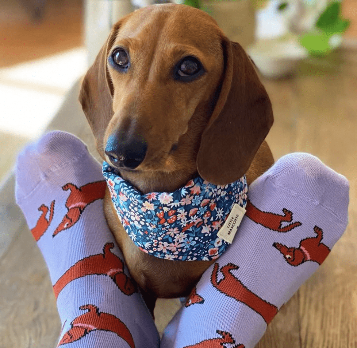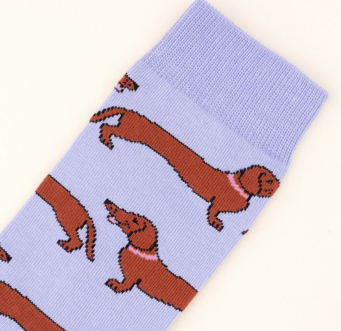 Craquez pour sa forme de saucisse et ses minuscules pattes. Découvrez le teckel, un des nombreux modèles colorés et doux de la marque Coucou Suzette. Des chaussettes funs et pour tout le monde!